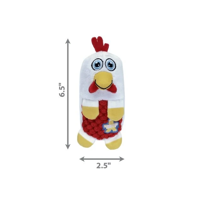 Your furry friend is going to love playing with this KONG Huggz Farmz Chicken Squeaky Plush Dog Toy! This barnyard buddy is soft and plush for indoor fetching and has a big bellowing squeaker to pique your pup’s interest. With minimal stuffing, this toy is less likely to create a mess around your home. Plus, Huggz Farmz dog toys are designed with double layers to help them last through a ton of instinct-satisfying interactive play!