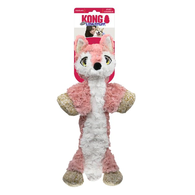 Add a touch of woodland whimsy to playtime with the KONG Low Stuff Flopzie Fox Squeaky Plush Dog Toy. With a snuggly-soft, long body and a weighted bottom, this adorable fox-shaped, plush toy is great for shaking and thrashing fun¬¬—rewarding your canine companion’s natural instincts. It’s made with less stuffing inside and an added liner, so there’s less mess in case your BFF is a tough chewer. Plus, multiple squeakers with varying tones keep your dog engaged and entertained. Your dog will love playing with this cuddly woodland buddy!