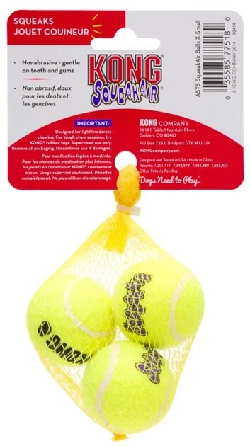 The KONG AirDog Squeakair Ball combines two classic dog toys — the tennis ball and the squeaker toy — to create the perfect fetch toy. This durable, high-quality Squeakair tennis ball will not wear down a dog’s teeth. It’s made with a special nonabrasive felt, compared to the abrasive material on normal tennis balls.